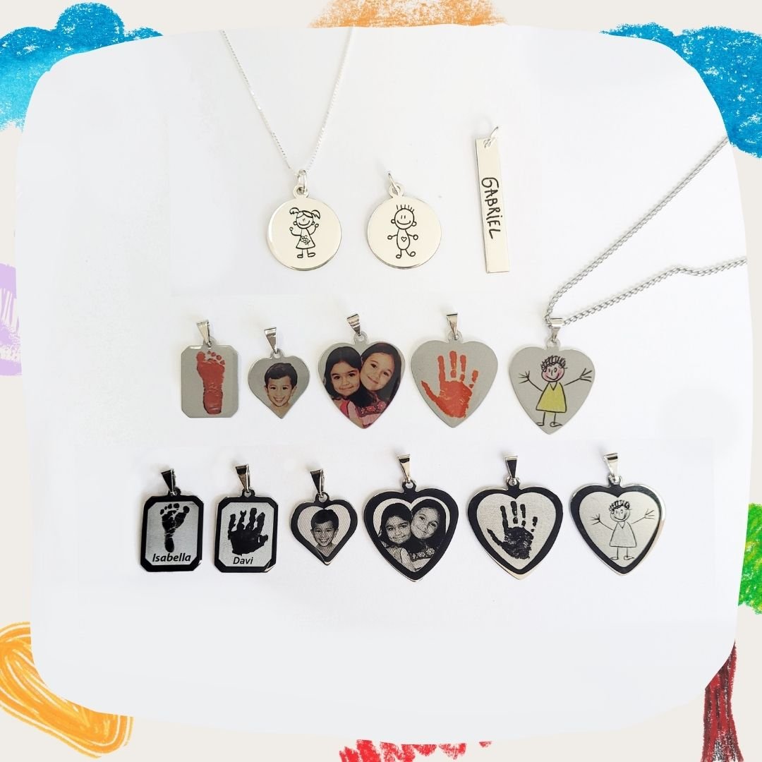 Nosso prazer tem sido converter fotos, logotipos, imagens, em joias personalizadas (pingentes, bottons, chaveiros, escapulários) que carregam histórias e muitas emoções!