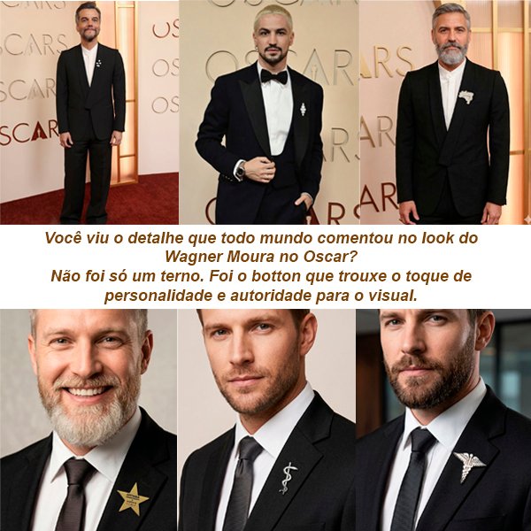 O Oscar 2026 deixou claro: o menos é mais, desde que esse “menos” seja carregado de personalidade. Se você quer transformar seu visual ou o da sua equipe, os bottons são o investimento certo.
