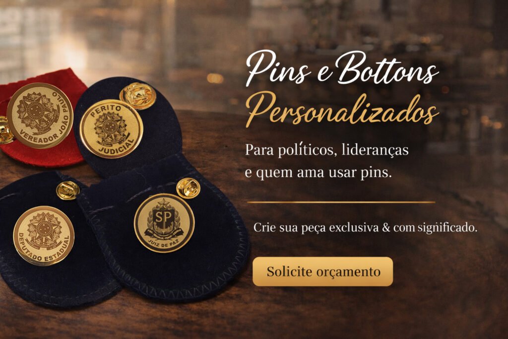 Seja em sessões, eventos, reuniões, campanhas ou encontros oficiais, o pin funciona como um verdadeiro cartão de visita visual.